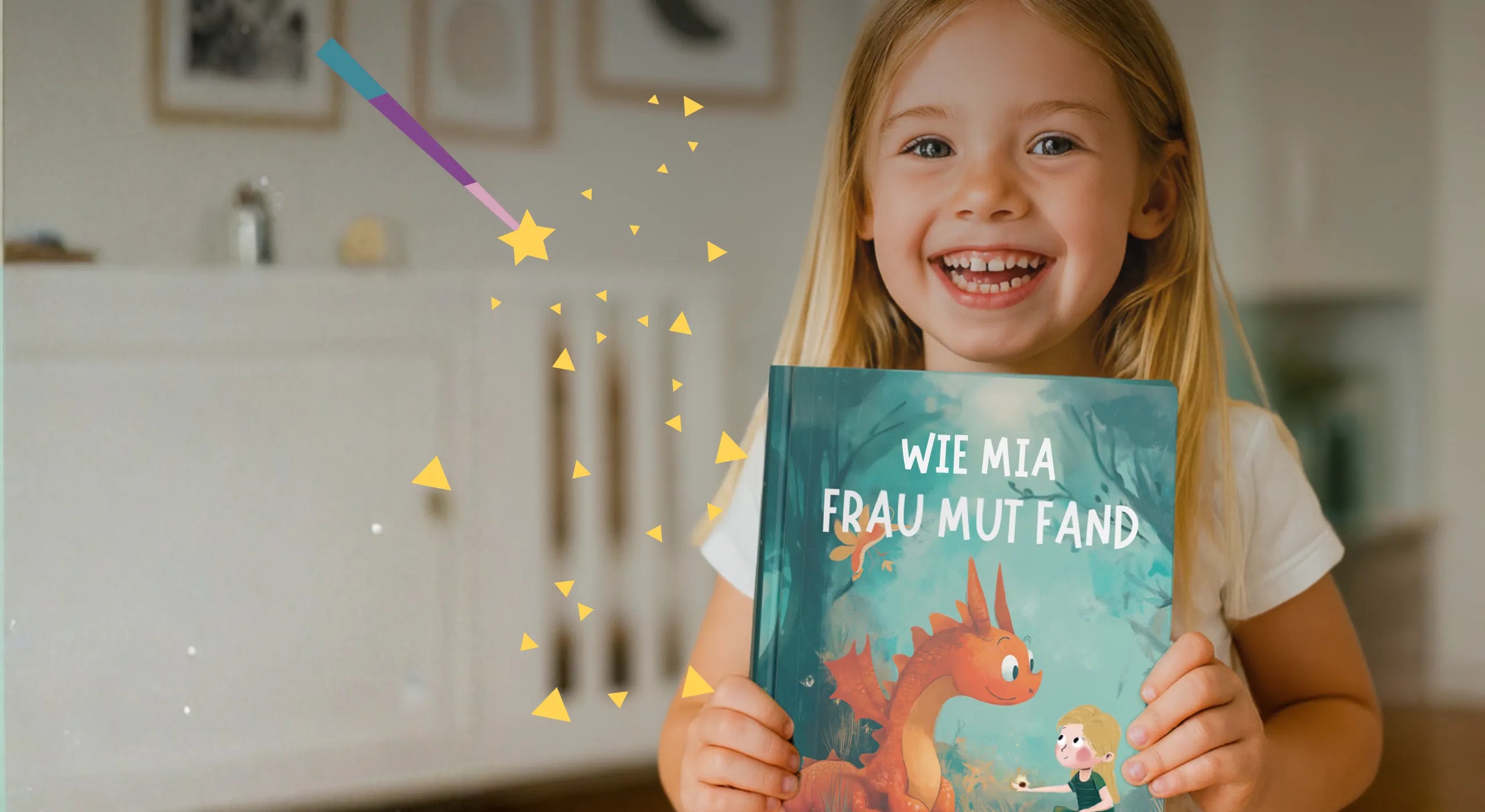 In den personalisierten Geschichten kannst du jede Menge Details anpassen: Den Namen, das Aussehen, das Zuhause, die Hobbys, das Lieblingsessen und noch so viel mehr! Gestalte jetzt dein ganz persönliches Buch für magische Lesemomente. Und so geht’s: Geschichte auswählen, Details anpassen und schon wirst du zum Helden in deinem eigenen Kinderbuch!